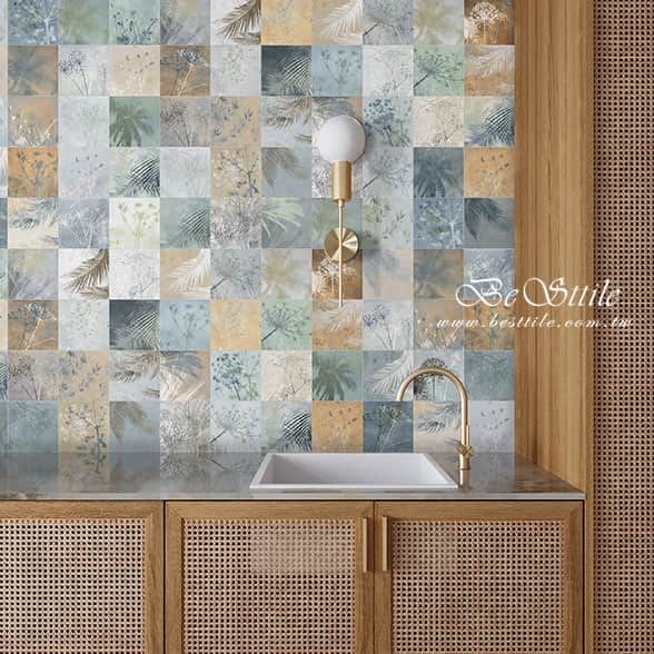 【 草本 文藝風植物拼圖花磚 】