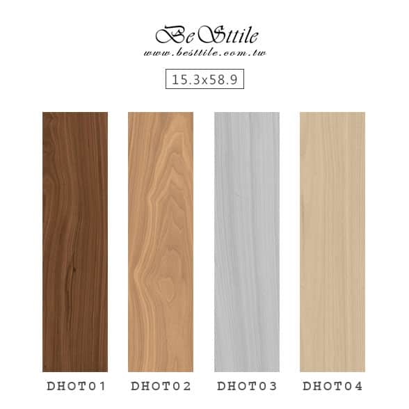 DHOT01 - 年輪棕 DHOT02 - 花生棕 DHOT03 - 朽木灰 DHOT04 - 奶茶米 ▲木紋磁磚,抗潑水、超耐磨、抗污,耐刮又好清理,年輪木紋,時尚現代磚、室內牆磚、Loft工業風,木紋地板磚、南方松木地板磚