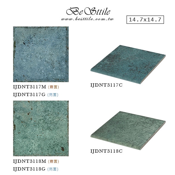 IJDNT3117M - 尼羅藍 (霧面) IJDNT3117G - 尼羅藍 (亮面) IJDNT3118M - 沼澤綠 (霧面) IJDNT3118G - 沼澤綠 (亮面) IJDNT3117C - 尼羅藍 IJDNT3118C - 沼澤綠 ▲英式鄉村風格、美式鄉村、法式鄉村、托斯卡尼風格、西班牙鄉村風格、西班牙復古磚