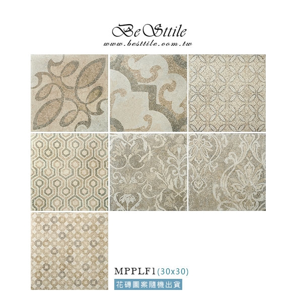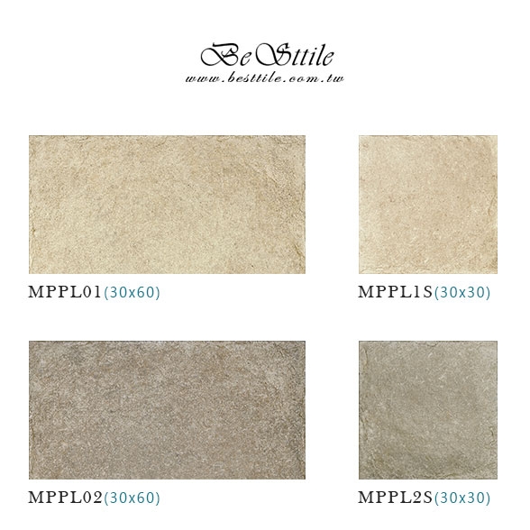 【30x60】 MPPL01 - 霞光米 MPPL02 - 板岩灰 【30x30】 MPPL1S - 霞光米 MPPL2S - 板岩灰 MPPLF1 - 復古花磚 (圖案隨機出貨) ▲電視牆、主牆、浴室廁所、戶外地板、牆壁、公共空間、客廳、臥房、餐廳、廚房、衛浴、戶外牆、大理石、花崗石、板岩