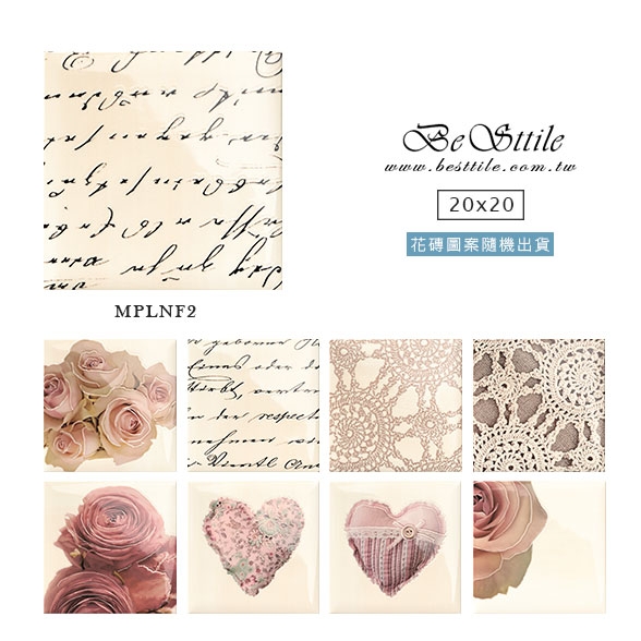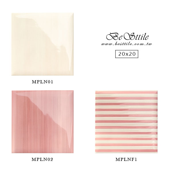 MPLN01 - 奶油白 MPLN02 - 櫻花粉 MPLNF1 - 條紋花磚(粉白) MPLNF2 - 隨機款式花磚 ▲手工花磚、精緻花磚、典雅花磚,水泥花磚、拼圖花磚、玄關花磚、地毯花磚、幾何花磚,立體花磚、歐式古典花磚、西班牙鄉村花園。