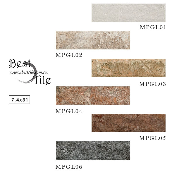 MPGL01 - 雲霧白 MPGL04 - 復古橘 MPGL02 - 奶茶米 MPGL05 - 屋瓦紅 MPGL03 - 向日皇 MPGL06 - 夜幕黑 ▲電視牆,文化石,外牆磚,復古磚,工業風,二丁掛磁磚,老屋整建,外牆拉皮,防水,主牆。