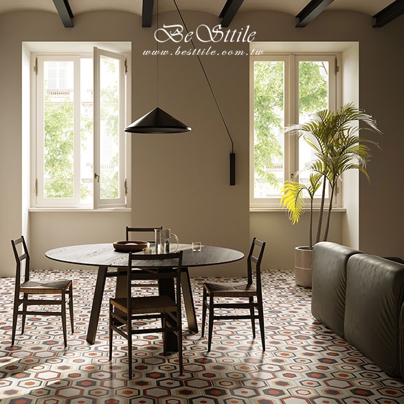 ▲六角磚,幾何、六角、蜂巢,現代風、工業風,咖啡廳、特殊造型磚、花磚