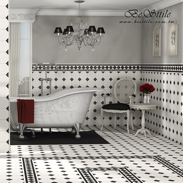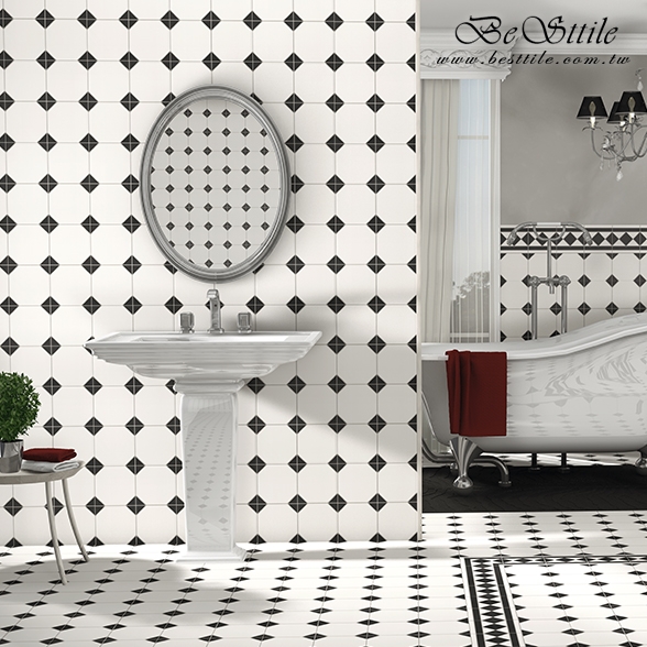 ELGN01 - 黑白花磚 (中間) ELGN02 - 黑白花磚 (腰帶) ELGN03 - 黑白花磚 (轉角) ▲手工花磚、精緻花磚、典雅花磚,水泥花磚、拼圖花磚、玄關花磚、地毯花磚、幾何花磚,立體花磚、歐式古典花磚、西班牙鄉村花園。