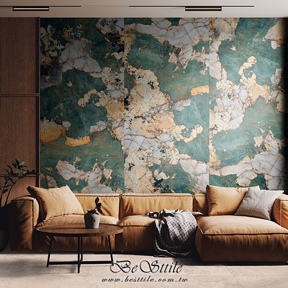 【 綠漾石 奢華雕刻綠亮面大板磚 】