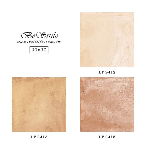 【30x30】 LPG412 - 麥茶黃 LPG413 - 珊瑚橘 LPG416 - 胭脂紅 【60x120】 LPG2371D - 彩繪花磚 ▲英式鄉村風格、美式鄉村、法式鄉村、托斯卡尼風格、西班牙鄉村風格、西班牙復古磚
