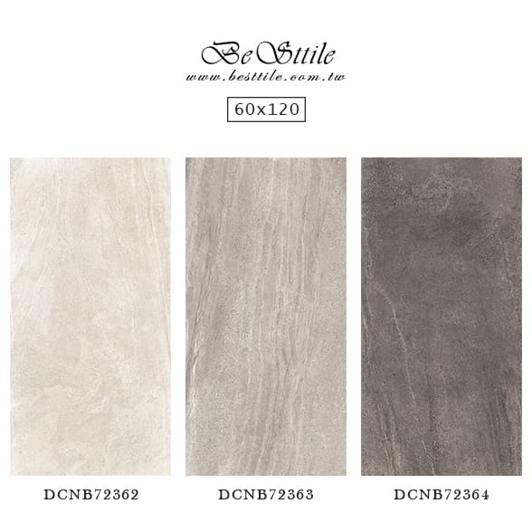 DCNB72362 - 絲路白 DCNB72363 - 流沙灰 DCNB72364 - 仿舊灰 ▲電視牆、主牆、浴室廁所、戶外地板、牆壁、公共空間、客廳、臥房、餐廳、廚房、衛浴、戶外牆、大理石、花崗石、板岩
