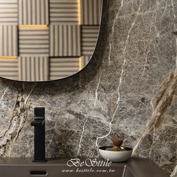 【 鑠峰石 奢華質感燙金棕薄板磚 】