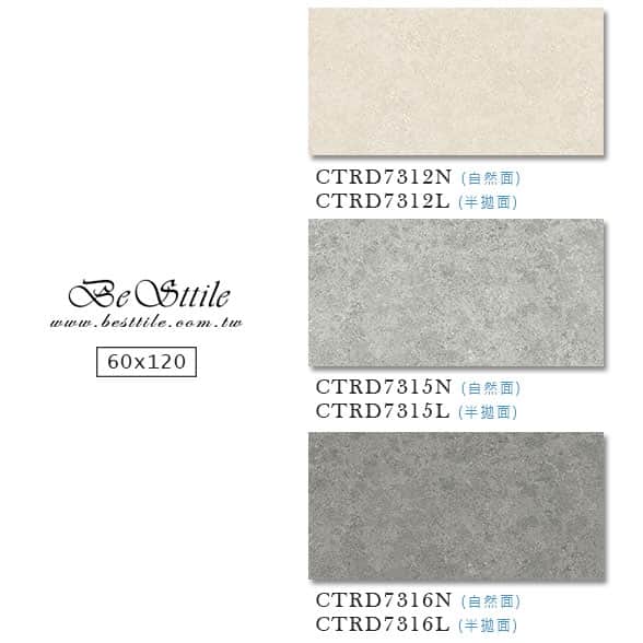 ↓↓ 自然面 ↓↓ ↓↓ 半拋面 ↓↓ CTRD7312N - 日曬黃 CTRD7312L - 日曬黃 CTRD7315N - 羅馬灰 CTRD7315L - 羅馬灰 CTRD7316N - 帝國灰 CTRD7316L - 帝國灰 ▲電視牆、主牆、浴室廁所、戶外地板、牆壁、公共空間、客廳、臥房、餐廳、廚房、衛浴、戶外牆、大理石、花崗石、板岩