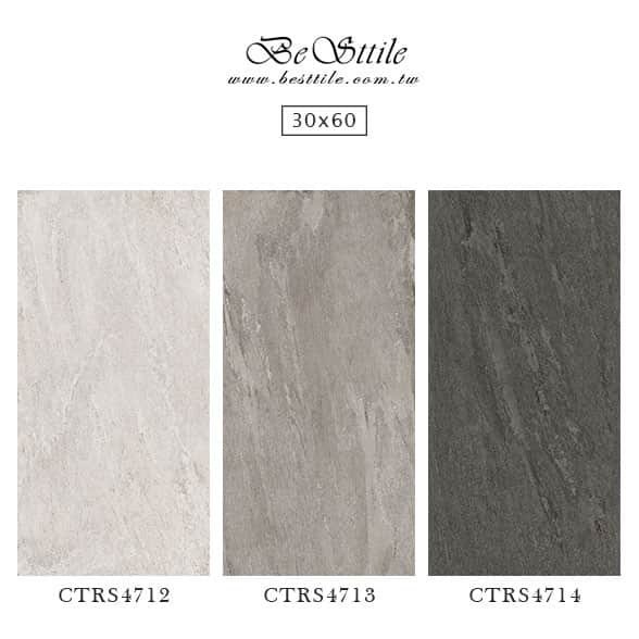 【30x60】 CTRS4712 - 化石白 CTRS4713 - 山壁灰 CTRS4714 - 洞石黑 【60x120】 CTRS7312 - 化石白 CTRS7313 - 山壁灰 CTRS7314 - 洞石黑 ▲電視牆、主牆、浴室廁所、戶外地板、牆壁、公共空間、客廳、臥房、餐廳、廚房、衛浴、戶外牆、大理石、花崗石、板岩