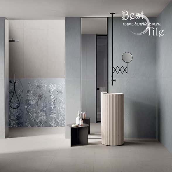 RGSJ72305F - 葉子花磚 (淺綠) 霧 面-共兩種圖樣變化 RGSJ72308F - 植物花磚 (藍灰) 霧 面-共兩種圖樣變化 ▲電視牆、主牆、浴室廁所、戶外地板、牆壁、公共空間、客廳、臥房、餐廳、廚房、衛浴、戶外牆、大理石、花崗石、板岩