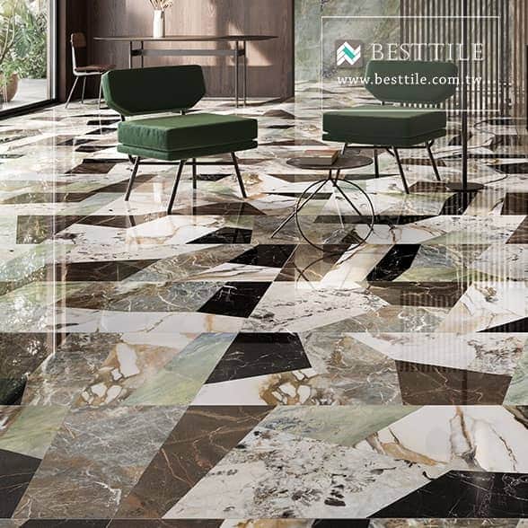 CUKP72357 - 流沙金 CUKP72358 - 石紋灰 CUKP72359 - 黃金甲 CUKP72350 - 翡翠綠 CUKP72361 - 歲月金 CUKP72362D - 協奏曲-幾何(花磚) ▲電視牆、主牆、浴室廁所、戶外地板、牆壁、公共空間、客廳、臥房、餐廳、廚房、衛浴、戶外牆、大理石、花崗石、板岩
