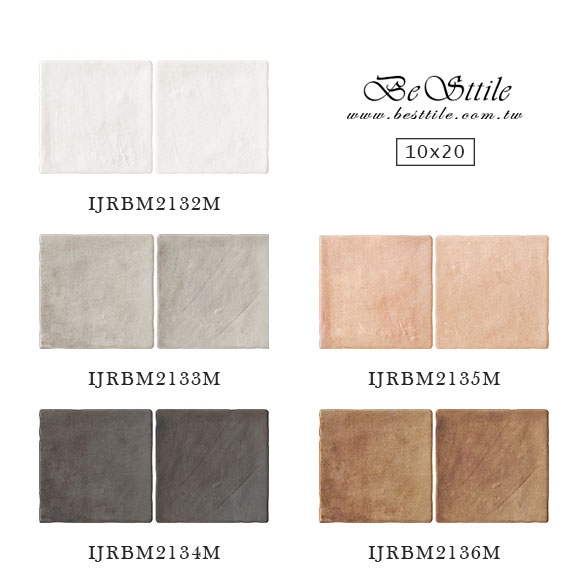 IJRBM2132M - 針織白 IJRBM2133M - 織錦灰 IJRBM2134M - 板岩灰 IJRBM2135M - 熱帶橘 IJRBM3136M - 焦糖棕 ▲英式鄉村風格、美式鄉村、法式鄉村、托斯卡尼風格、西班牙鄉村風格、西班牙復古磚