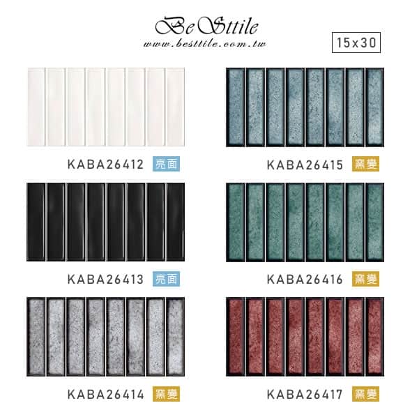 KABA26412 - 牛奶白 亮面 KABA26413 - 夜幕黑 亮面 KABA26414 - 太空灰 窯變 KABA26416 - 龐克藍 窯變 KABA26417 - 伯爵紅 窯變 ▲幾何 六角 蜂巢 現代風 工業風 咖啡廳 特殊造型磚 花磚 地鐵磚 美式。