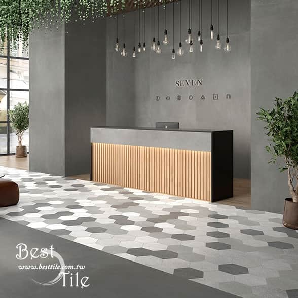 ▲六角磚,幾何、六角、蜂巢,現代風、工業風,咖啡廳、特殊造型磚、花磚