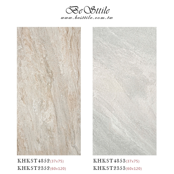 【37x75】 KHKST4852 - 砂礫棕 KHKST4853 - 淺灰白 【60x120】 KHKST2352 - 砂礫棕 KHKST2353 - 淺灰白 ▲電視牆、主牆、浴室廁所、戶外地板、牆壁、公共空間、客廳、臥房、餐廳、廚房、衛浴、戶外牆、大理石、花崗石、板岩
