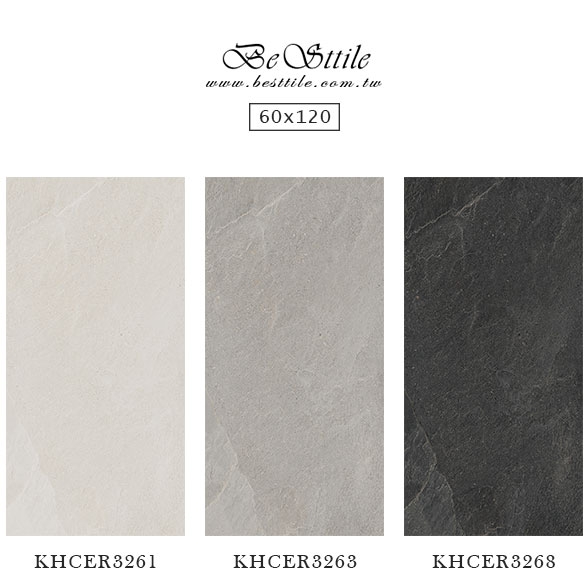 【60x120】 KHCER3261 - 玄色米 KHCER3263 - 太空灰 KHCER3268 - 穆勒黑 【120x120】 KHCER3361 - 玄色米 KHCER3363 - 太空灰 ▲電視牆、主牆、浴室廁所、戶外地板、牆壁、公共空間、客廳、臥房、餐廳、廚房、衛浴、戶外牆、大理石、花崗石、板岩