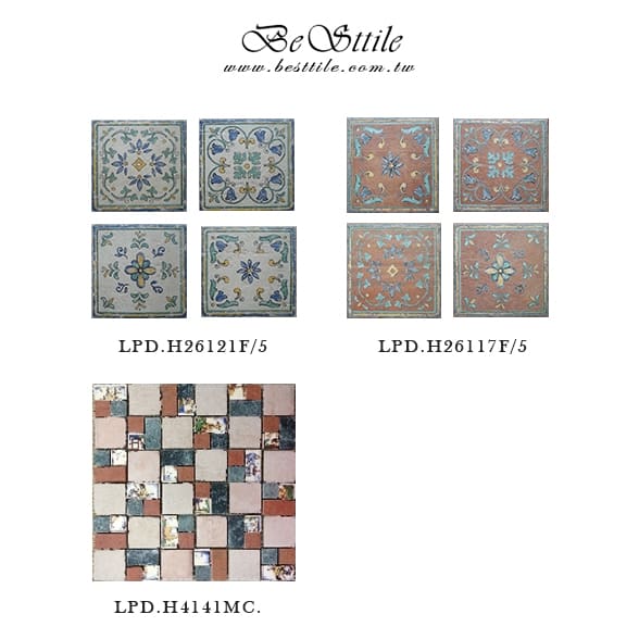 LPDH41421 - 月光白 LPDH26421 - 月光白 LPDH26121 - 月光白 LPDH41417 - 鐵鏽紅 LPDH26417 - 鐵鏽紅 LPDH26117 - 鐵鏽紅 LPDH26121F5 - 月光白(花磚) LPDH26117F5 - 鐵鏽紅(花磚) LPDH4141MC - 田園馬賽克