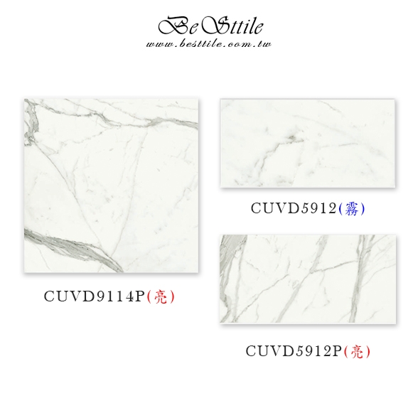 CUVD5912P - 雲朵白(亮面) CUVD5912 - 雲朵白(霧面) CUVD9114P - 雲朵白(亮面) ▲電視牆、主牆、浴室廁所、戶外地板、牆壁、公共空間、客廳、臥房、餐廳、廚房、衛浴、戶外牆、大理石、花崗石、板岩